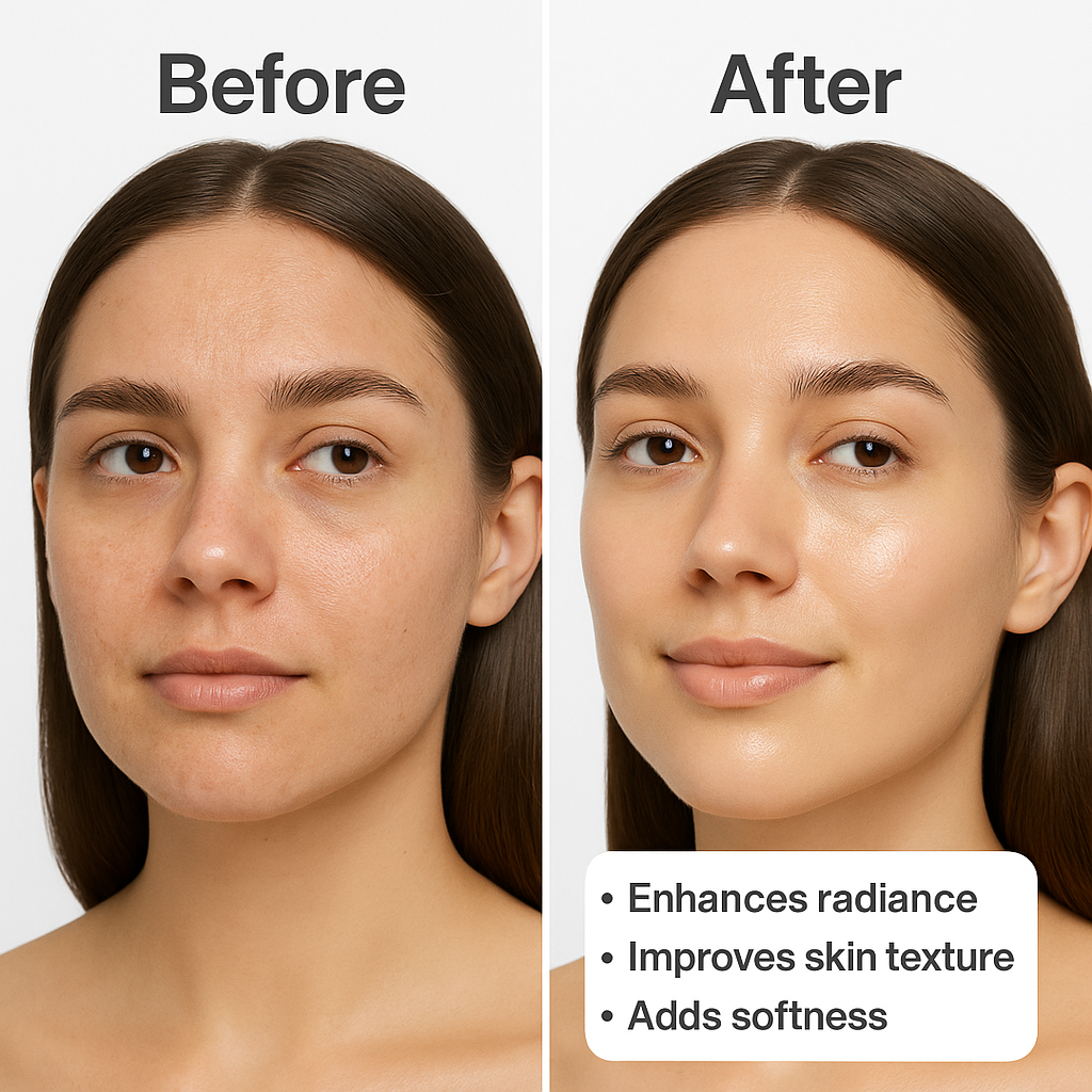 Absorbs quickly without clogging pores or leaving residue. You’ll get that dewy, healthy glow — not a slick, oily feel. Perfect for daily use under makeup or before bed.